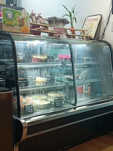It's my first time visiting this cafe b/c i had no choice since moonleaf was still closed. They played music in this cafe, the sofas were comfy, the tables were too light and moved just by leaning and putting the elbows on it. There's plenty of seating that can hold roughly 25-30 pax Went here close to 10am on a weekday and I was craving a sweet cold beverage, specifically frappe. Unfortunately they didn't have ice so I just opted for their blueberry cheesecake priced at PHP 145, with cold water as quencher. The base of the cake tastes old so i left it on the plate, the cheesecake is too dense and stiff, which was topped with another stiff/dense whipped cream that isn't sweet, and the topmost layer was a thick blueberry jam with fruit bits. Rating the food 2.4/5. The baked goods display was an eye-sore with heavy water stains due to moisture since it is after all a chiller. Might come back to try their beverage. There were 3 diners there who i overheard ordering rice meals although I didn't know the prices. Go here if you're allergic to crowded cafes/diners. It's located in front of pagibig office, beside sir...