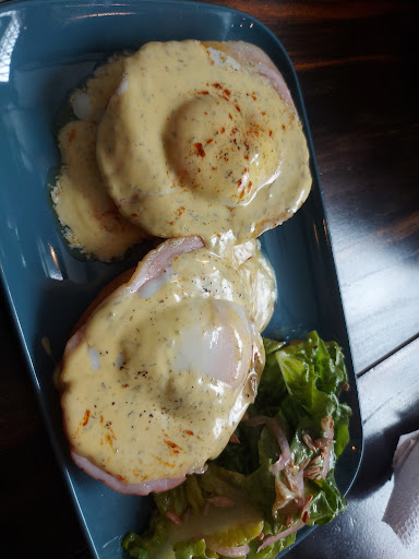 Our coffee arrived, it was alright. When food arrived, my egg benedict.....how do I put it, those 2 poached eggs were not cooked at all!!!! You can see water on the bacon mixed in with the sauce, egg white is totally uncooked. I couldn't eat it so told the staff, he asked something but I was not fully sure. I thought he would take it back and make another one for me. A few min later he came back from the kitchen said something like chef said your eggs can't be cooked the way you like, only way is scrambled. I thought maybe the chef didn't want to poach the eggs so I said ok to scrambled eggs.