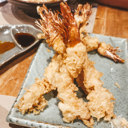 EBI TEMPURA (P580) I thought, at first, it was too pricey. And I expected like 3pcs ebi because that's the standard. But no, it's six giant pieces. It was soooo tender and nice. The only thing I did not like was the sauce. Didn't taste like anything.