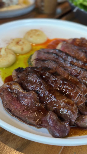 We decided to go all out and ordered their Wagyu steak, a juicy hunk of meat weighing around 500 grams. Let me tell you, it was so tender, I could've cut it with a gentle whisper. The sides that came with it were the perfect dance partners for that steak. And oh boy, don't even get me started on their complimentary bread. It was like a flavor explosion in my mouth, matching perfectly with the spread they served.