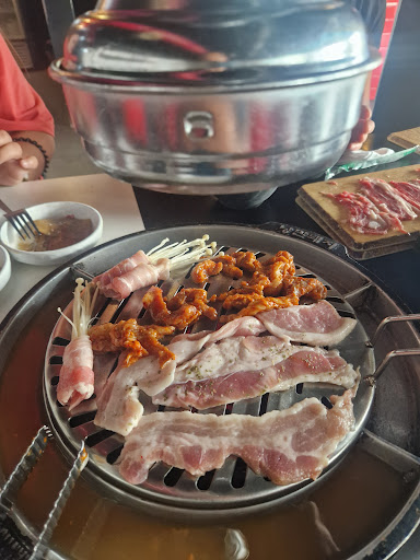 The ambiance is nice and cozy, creating a warm and inviting atmosphere. The restaurant maintains proper air conditioning, and the burners have vents, ensuring a comfortable dining environment without the discomfort of excessive heat or smoke. This attention to detail enhances the authenticity of the samgyupsal experience.