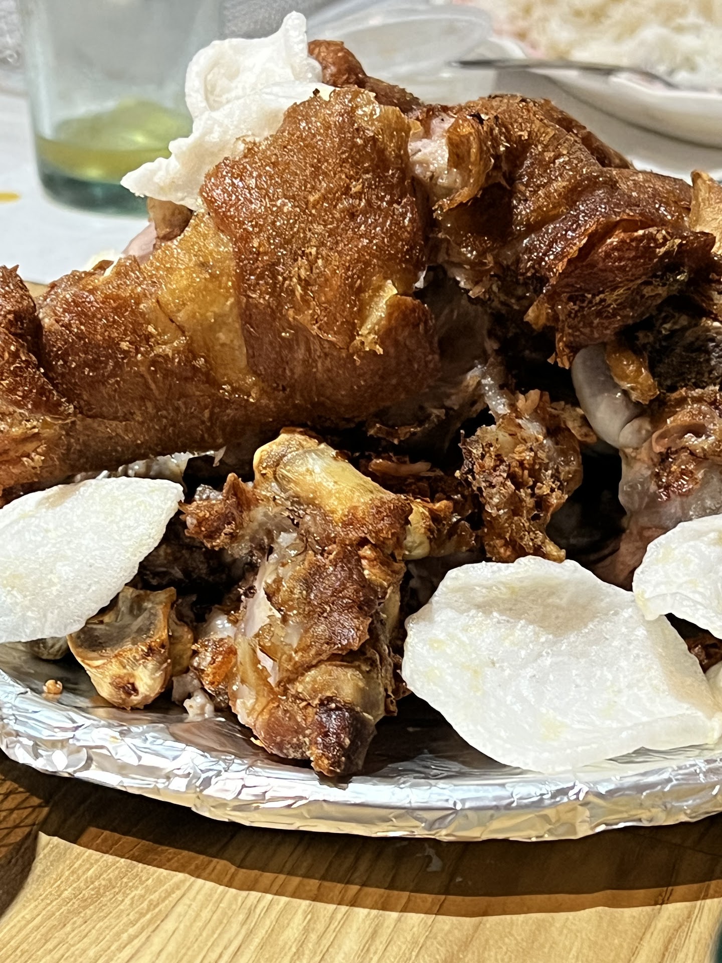 Ordered: kare-kare, crispy pata, calamares, sinigang na salmon, buttered shrimp, lechon kawali and rice.