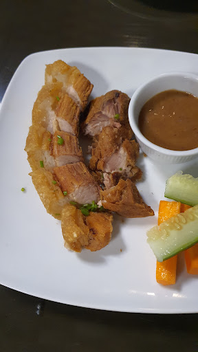 We went to dine around 7PM. Staff Service was good, but it was hot inside, they only turned on the AC when we came in. Food was disappointing, we ordered onion rings, chicken wings (garlic parmesan), and pork chop steak. The onion rings were okay, but the dip mostly tasted like plain mayo. Pork chop steak was on the tough side, and difficult to chew, silver lining is that the sauce and vegetables tasted great, it made the meal atleast edible. The chicken wings were the worst. It looked nice upon serving, but upon digging into the chicken, the inside smelled bad. I honestly gagged with the smell but I still tried to eat it and gave it a chance. We did provide some feedback before leaving. Overall, we are definitely not eating...