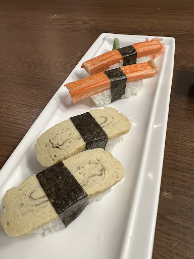 Tamago nigiri looks dull in color and bland. Kani nigiri is just imitation crab stick.