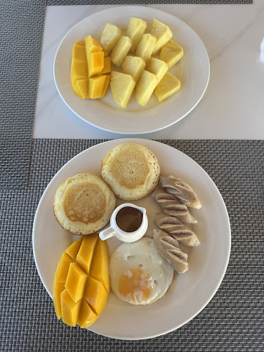 The staff were friendly and helpful in explaining what things to see and how to get there. The room was as advertised, the size was correct and as we selected the king bed ocean view, the big balcony was perfect to enjoy the view. We loved the pools. The hotel location is quiet, if you don’t mind the neighbourhood roosters (pretty much everywhere). As the hotel is located a bit far from the town though, they provide a complementary shuttle to get to go to the beach. Of you want more freedom and as a tuk tuk ride cost around 200P one way, we would recommend renting a scooter to go around.We rented one at the hotel (Suzuki Bugman street) for 400P, it’s 50P more than what you could get in town, but it’s convenient. The scooter carried both of us to the chocolate hills, and all other places we wanted to see. The breakfasts were pretty straightforward with three choices, Filipino Tosilog (more a grilled porc), a continental that was my choice after trying the tosilog, and an Asian one, my partner tried the dumpling and well this was a real disappointment. There is one thing I really didn’t liked is that the coffee isn’t brewed, then if you want a small cup of brewed is 150P and the juice is additional charge of 190P. All hotel everywhere have brewed coffee and juice included with breakfast. Something I told the hotel’s owner. Would we recommend that hotel? Definitely yes, for the room, the...