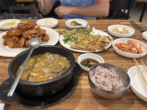 I live in the Southern United States, and my exposure to Korean food has been rather limited, but my girlfriend and I thoroughly enjoyed our lunch here. We ordered the pork soup, an onion leek pancake, spicy chicken wings, and (of course) cold beer. We found all the food tasty, including the traditional Korean appetizers that were provided. Their kimchi was top notch. I thought the chicken wings could have been spicier, and my girlfriend was of the opinion that they could be a tad more on the crunchy side, but both the sauce and cook on the wings was very good. The pork soup seemed to use a chicken stock (not sure what Gordon Ramsay would say about that), but it was delicious nonetheless. Of note, you have to add the chili paste and shrimp sauce/oil to season the soup to your liking. We were perhaps the most blown away by the pancake though. Would certainly make the walk up to the restaurant from the beach just to have another. The service, likewise, was good.