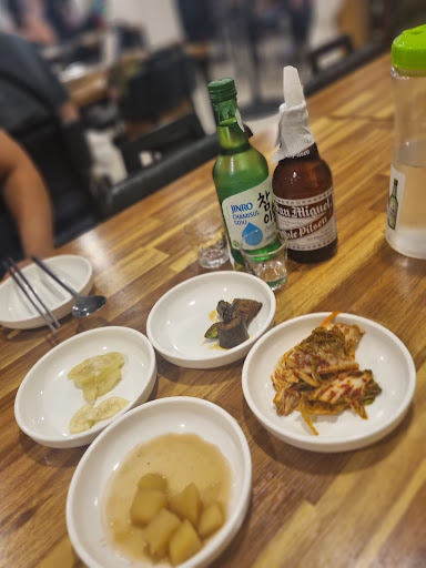 The most important thing to keep in mind with this establishment might be that they gear their portions and prices towards groups. It isn't particularly economical for a couple to stop by for a quick meal. I would consider the menu to be mostly Korean "pub food," though arguably healthier than what most Americans would think of that dining category. Come here with 3ยฑ people and you can share plates and enjoy the delicious food without as big of an impact on your finances. The restaurant no doubt caters to the large Korean tourist population here and probably offers karaoke in...