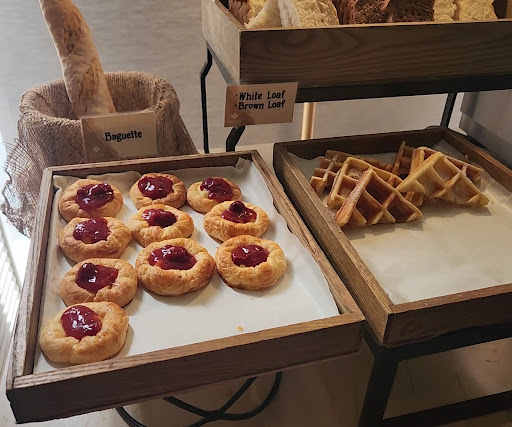 Around 6-7 viand options, salad and fresh fruit corner, egg corner with choices of sunny side up, boiled, scrambled and omelet that can be cooked to your liking, cereals, yogur, cheese and cold cuts, pastry and dessert corner, Mami soup corner, coffee, choco, juices and various local delicacies outside. Staff are helpful and accommodating. They around change 2 to 3 viands every day.