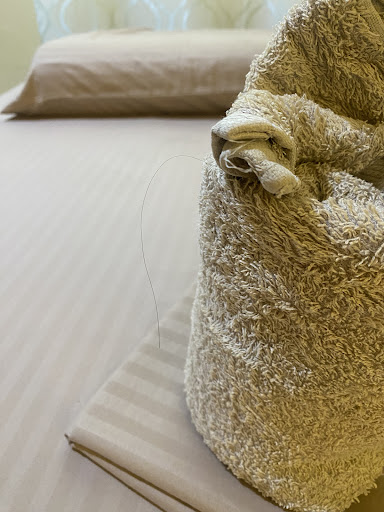 Second of all, the room is so smelly. It has a terrible smell of damp & mold. There are lots of mosquitos in the room and we have even seen the big jumping spider in the room as well. We have also received towels with someone else hairs on the top of it.