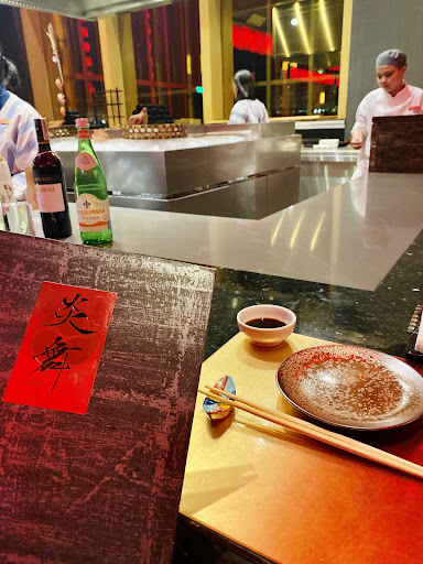 (Google translate) 這家酒店現在仍然是馬尼拉最大的酒店,所以請多留點時間來尋找餐廳。非常明亮,有吸引力的紅色燈籠。 預訂我們團隊的吧台桌,因為看著廚師準備我們的食物很棒。 這不是我所期望的,因為他們實際上大多在高燒烤站後面燒烤。 但是我們坐著的地方正對著大噴泉,在晚餐時我們可以看到噴泉的表演,如果您想近距離觀察,可以隨時走到那裡,它非常近,而且是一個非常不錯的地方。