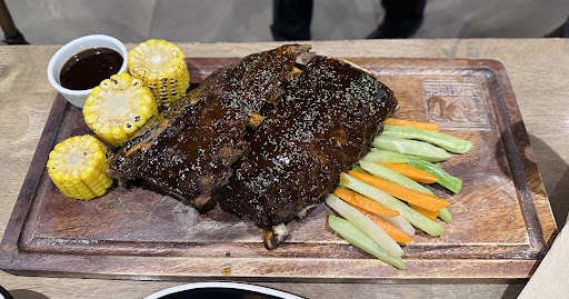 BBQ Ribs: flavorful and tender, accompanied by perfectly cooked vegetables on the side.
