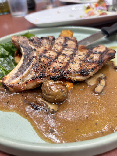The pork chop au poivre was so thin, the accompanying potatoes were small marbled ones which they even had to slide in half (whyyy???). This used to be the thicker and with large potato wedges.
