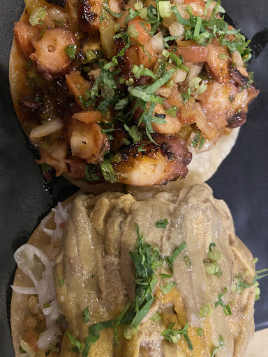 We ordered their staple taco tray and their uni and pulpo tostado paired with mexican coke.