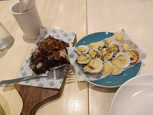 I wish I had discovered this restaurant sooner. The food was so savory, best paired with rice. We got the lechon and baked scallops, which were both so good. Lechon had crispy skin, succulent meat, and just a really strong herby flavor. Personally, I find it a bit salty, but goes perfectly well with rice. The baked scallops, on the other hand, are just too addictive, with the perfect balance of cheese and garlic. The mango shake is also decent, more on the milky side. Will definitely come back to try the other food on the menu.