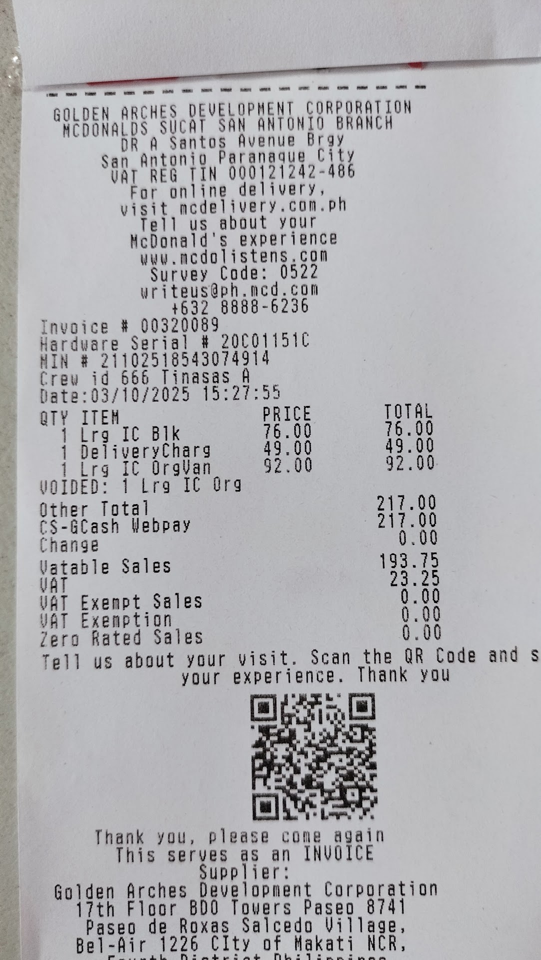I ordered iced coffee through the McDonalds Delivery App. The branch is Sucat San Antonio (across the street from SM BF), where I order my coffee regularly for years now.