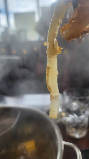 Food was horrible, the meat and the vegetables for the hotpot were clearly not fresh. The meat already lost most of its flavors by the time you cook it, you can't even know if you were just chewing on a piece of rubber or not. The vegetables colors look so off, as if they have been sitting in the fridge for a whole week, before being served to us, and the cooks probably did not give it enough time to thaw because it still was frozen when it came to our table. Not to mention they just tasted awful. I never had such a bad thirst/aftertaste in the evening after dining(they put too much msg). The hotpot sauces were also sitting outside all day too and were not being replaced/replenished (spoiler alert: there's no customers). Prices were just so inflated, not even the foreigners would come here.