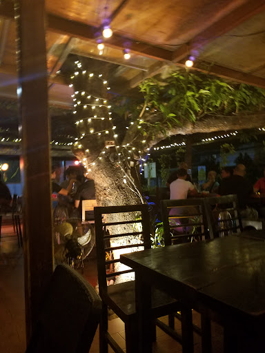 There weren't that many people when i went so it felt like a nice chill place to drink, eat, and hangout with friends outside of peak hours. There's a beer pong table here so it might get noisy and crowded. Ambience is good so if you want that, you'll like it here. Sit around the tree at night. It's nice. Didn't eat that much food but it was ok. Drinks were good. Prices was affordable and just right in my opinion. Service could get improved though at sometimes, we had to wait five minutes or more to get the attention of one...