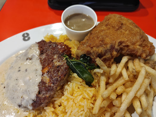 Read more2nd time in here, first was take out during the lockdown and 2nd was dine in I ordered meaty burger for take out for me and my brother before and enjoyed the burger really well 2nd time was an order of gut buster for 398 pesos, order included 1/4 lb burger, big serving of chicken, savory fried rice, extra thin fries, and a glass of iced tea burger patty was really excellent on this order, mozarella filled and topped with delicious white sauce. ( I'm on a high protein diet and do carb cycling and I have been eating mainly burger patties from those food bazaar type burger house for over two weeks and never really enjoyed them like this, for me expensive burgers should always come with the quality and taste and 8 cuts really delivers that with their burger offerings Chicken, same with burgers, I mainly order chicken meal when I go out since it's the only high protein option available for me, their chicken is the best tasting chicken I tasted so far in a while, super flavorful as in, crispy and thin chicken skin but not uber cripsy and super breaded like other fastfood resto. Really enjoyed with the gravy and savory fried rice. Also big serving is commendable Fries, yes they are extra thin and also the right amount of cripyness and taste. Not too salty, oily and not extra crispy that it ends up cutting your gums. Overall, enjoyed my dine in experience, food attendants are always attentive and tables are made sure sanitized and proper before they let you come in and take a seat, also they allow you to make advance order while waiting to be seated. I'll definitely comeback and dine in again or at least make another order for take out when I go along moa area.