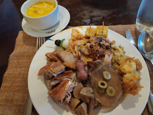 The price has increased, which wasn’t surprising. What was surprising was the drastic decrease in quality of food offerings. No more salad (only tiny cups of pre-mixed salad), small selection of cold cuts, and literally only Eden cheese (or something similar) as the cheese option - no manchego or and other decent cheese. There were maybe 4 or 5 options for main, and two were virtually inedible (the roast pork was dry as a bone and the callos was rubbery). My mum’s favourite dish, lengua, was also no longer on the buffet (it used to be). The desserts were just pathetic - there used to be leche flan and cakes… now there’s just Brazo de Mercedes (which is mainly whipped egg whites), jello in shot glasses, some sad, dry old tartlets, and two kinds of sliced melon - the cheapest fruit available. Safe to say that with this pathetic lunch, Alba’s has lost us as...
