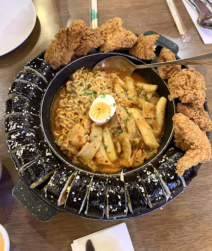 Read more1st visit Gimbap is packed and a mouthful, nice to pair with their radish and yellow sauce (which I think is mustard and jap mayo) very crunchy chicken, couldn't have enjoyed the meal w/o the sauce (winner ✨) Tteokbokki is ok but sauce wasn't thick enough, i'd like a bit more gochujang. Our order was served after 30+ mins, better to dine na hindi rush hour. Staff were polite and always present to refill our glass. I'd go back to try other flavors :)