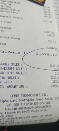 Read moreFirst time to eat here, and we were not satisfied. Food portions are small, especially the crispy pork with veggies. Their famous crabs are ridiculously expensive, and the price written on the menu is misleading. It could be simplified if they’d just write the usual price range of their crabs, which is 1300, 3,200, 4,000php - they instead write 400php per gram which will make you think it’s not expensive. You only get 2 choices for vegetable options, small servings. The staff are friendly, but don’t expect them to explain to you the actual prices of the crabs. Not worth it. Never...