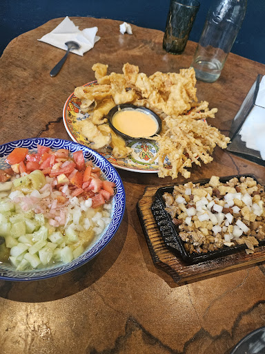 Our food arrived after 40 minutes, and the tempura platter and miso soup were barely warm. Biting into the tempura, we got oily and cold mushrooms ☹️ The dipping sauce for the platter wasn't a lot either, not even close for a nice amount to dip all the pieces in if you wanted to dip them all. We asked for the soup to be warmed over because it was teetering on the edge of cold, and then it was almost delivered to the wrong table. Eggplant ensalada was okay. The sisig arrived last, and at least that was served hot. It tasted okay as well, missing the spicy kick/green peppers on top that one would expect of sisig though.