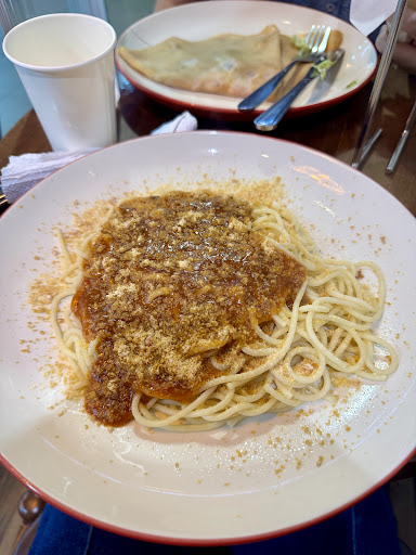 Read moreWe went here around mid-afternoon. My companion wanted a savory crepe while I went for something heavier, so I ordered their spaghetti. It was filling, but honestly mediocre at best. Unfortunately, beef wasn’t available at the time, so for the savory crepes, we settled on the Porky’s Bacon, which turned out to be mostly veggies and corn with very little bacon. The pepperoni pizza crepe was okay, nothing too special.