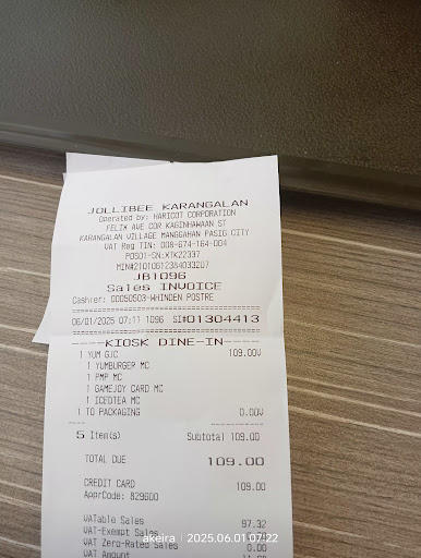 Keep up Jollibee Karangalan crew for the friendly atmosphere. Also mentioning the kuya guard stood by the door (from Dizon...