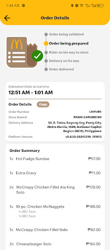 We order at McDelivery app, the estimated time of arrival is 12:51am-1:01am.