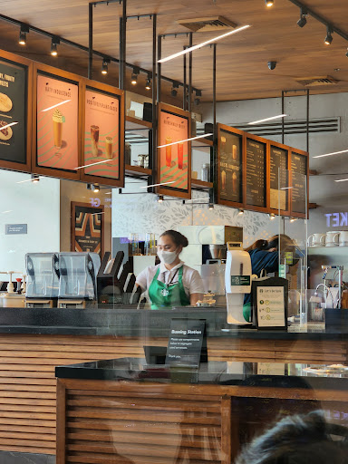 Starbucks is that coffee place that you would want to come back to each time you feel like going to a homey-welcoming-comfy coffee shop. They are popular not only because of their delicious drinks but because of their exceptional customer service. This SB branch is by far, the only Starbucks coffee shop that does NOT have excellent customer service. Cashier is NOT friendly. Sarcastic tone even. Parang made you feel, ang tanga mo sa order mo. Soooo disappointing. Yes, staff will great you (maybe as part of their training or requirement) but not really friendly-friendly like the other branches I've been to. Plus, I am sitting next to a PWD person in a wheelchair and nobody from the SB employees helped him settle his seat/table. Nobody😔 maganda lang ang setup because of the brand. Thats it. But because of the employees, the brand is dragged down along with...
