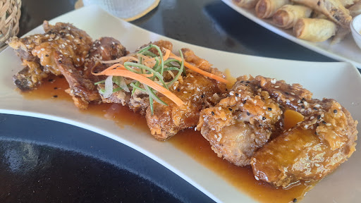 ย ย ย Read moreI want to be constructive here because this place could be great and I hope this review is taken that way by management. The setting is beautiful around a Zen like garden alongside the swimming pool. The entres me and my partner shared were excellent. Gambas (prawns) and very enjoyable pork spring rolls. Before we were half way through our entres our mains were brought out. They were taken away when I said we were far from ready. Both of us ordered the pork chops as mains and obviously they just placed them in the oven for another 20 minutes so when eventually served they were dryer and tougher than an old gumboot. Had they been fresh they would still have been 40% fat and bone and perhaps 70gms of meat total per serve. Basically inedible. The red wine came straight from a fridge served cold. (?) They have an impressive gin selection however an order (30ml shot) is served in a goldfish bowl (at least 300ml) of tonic so I couldn't even taste if there was gin in it let alone appreciate the nuance of the selection. Again a very pleasant place and the entres were excellent but currently there is a lack of basic understanding that could easily be cured and turn this place into one that deserves 5 stars. I will go back again one day to see whether they've...