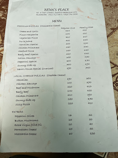 Read moreWe visited Neva’s place a couple days ago. Delicious food and the layout of the restaurant is beautiful. Tables all around a nice garden. The prices have increased since the last google photo on here (which is understandable since the photos are a few years old now) but the portions are a good size. I got the regular size pizza and it was like a large size. My boyfriend got the pork Milanese and he thoroughly enjoyed it and recommends it. The pizzas are stone oven baked and you can watch them make them from the seating area. I took photos of the updated menu...