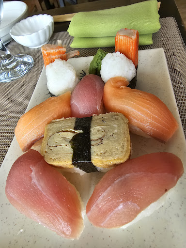 The restaurant was completely empty when we arrived at lunchtime (1.30pm) so even though the place was nice and clean and well appointed, there was really zero atmosphere to speak of. The service was good and efficient, and the food was pretty good. We ate the sushi matsu and my partner had a sizzling beef pepper rice with an ice tea shake. The beef pepper rice came out really sizzling on a metal platter, but parts of it were still raw when delivered so they needed the platter to actually cook it. Don't be afraid if this happens, you just have to make sure the thin slices are in contact with the metal. However the sushi was warm and this transferred to the salmon, tuna and so on above it, which made me feel that this wasn't really how I would expect sushi to be served, or to taste. Nonetheless it was a reasonable portion for the price and we are pretty well. We both agreed this place is about a 7/10 overall, but the reviews here only allow for marks out of 5 so we...