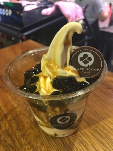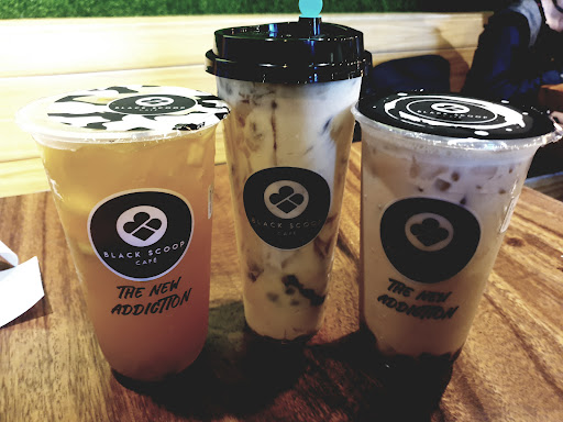 Black Scoop cafe also offers food and drinks such as: Coffee and Chocolate Drinks Cream Cheese Lattes Specialty Drinks Frappe Drinks Tea Drinks from Milk Tea to Fruit Tea