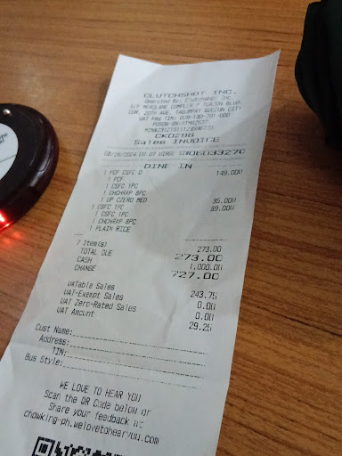 The food quality was really bad, cold and tasteless. The siomai was soggy and cold on the inside, the Chicken and the dumplings were the only ones that felt like it was cooked on the spot for my order but the inside of the chicken was undercooked with some parts still raw.