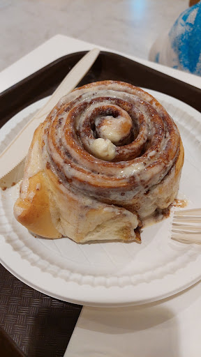 Counter-serve chain serving cinnamon rolls plus other baked goods & specialty frozen beverages.