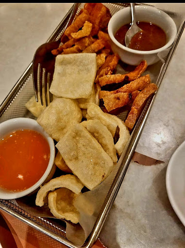 The San Gabriel, deep-fried chicken served alongside crispy chicharon, creating a delightful contrast of textures and flavors. The chicken is tender on the inside and crispy on the outside.
