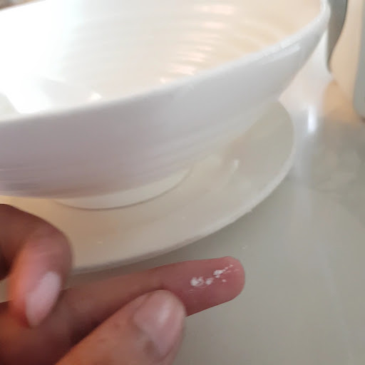 After finishing my Wonton Mami, I found specks of white powder that looks to be like dish powder sticking on one side of the plate of the bowl. ๐๐ฝ๐งผ