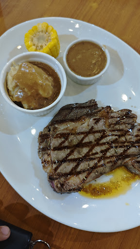 Ordered the ribeye steak, medium-rare with mashed potatoes and additional rice since I was hungry. From the price you can't expect much as they source local beef, but it was cooked to preferred doneness and there were no sinews in the steak, which made the eating experience pretty good. It was a "pwede na" taste. Not really beefy but tender enough.