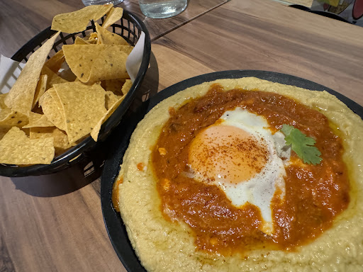 Humshuka was hummus combined with Shakshouka (I had to google what it was) which actually worked quite well. The hummus was creamy, the tomato sauce was piquant and the egg on top was firm. Served with sourdough slices which were hard, toasted too long and there was not enough for 3 people to share. We asked for additional bread and server advised an extra charge for which we agreed but asked for the bread not to be toasted too much. Still not enough. We still had left over humshuka but we do not want to pay extra again for bread which should be served in sufficient quantity relative to the dish.