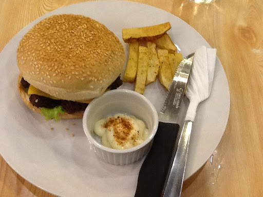 Food tastes good, and wait staff try their very best to be responsive and accommodating. Food is also well plated... One problem, though: when I took out the tooth pick which held the burger patty, bun, and filling together, I did not like the color of the wooden pick. I called the attention of the wait staff. She said that the discoloration may have been caused by the heat of the bun and patty when the hamburger was assembled... I said, "Really?"... and so she said, "Sir, we will just replace your order instead, and we will not use a tooth pick anymore."