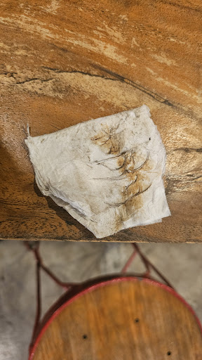 The food is great. Not our first time to eat here. But please make sure your tables are clean. Outside tables and chairs are dusty/soiled (with sand) probably because of the construction nearby. But it is 7pm and a holiday. I don't think people worked in the construction today. The tables with metal frames on top are also rusty. Not ideal for a dining table. See pic of the tissue i used to wipe your chairs and table. That's the 3rd tissue. Please include the thorough cleaning of your outdoor tables and chairs in your daily routine. Also, please repaint the metal frames bordering your table...