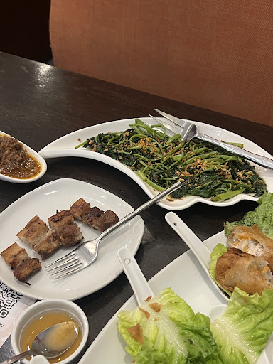 My friend recomend this restaurant if u craving for filiphino cuisine and this is my second time order from this restaurant. This time I tried to dine in for lunch and order from appetizer to their desert. ~ Spring roll : 7/10 I like their crispy taste and veggy + fish fill inside it, for me it taste just ok bcs little bit bland for my taster but the portion is fair for the price ~ salted egg shrimp : 7/10 it’s not as i was expected but taste still good. It’s very creamy and i can taste hint of sweet? But overall it’s good. I order the small plate bcs it’s good for 2-3 pax ~ beef (i forget the name🥲) : 8/10 it’s their recommend in the menu book u can find it. I love the taste and perfectly well to eat with rice and kangkoong hahah also order the small plate ~ kangkoong lechon : 7/10 i make request to separate the lechoon hehe it taste good also and they have many garlic above it, so tasty. ~ leche fla : 9/10 for people that love pudding i highly recomend this for you. So soft, creamy and sweet. I love it for perfect combination.