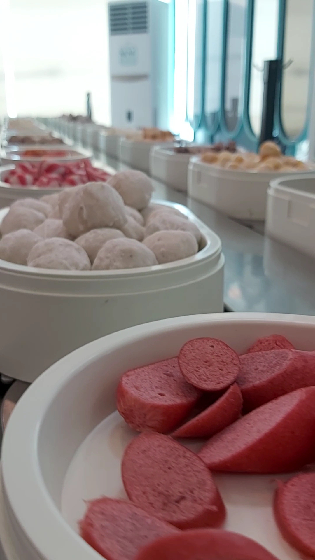 The rate is 709 for hotpot only and 1009 for hotpot+grill. Each person has their own grill and hotpot. There are separate tongs to get food from the rotating queue and tongs to cook. The quality of the ingredients were very good. The shrimp seemed fresh and was very tasty. They also have pork/beef/salmon and various hotpot balls. You can also mix your own dip they have the usual sate, peanut sauce, sesame oil, etc.