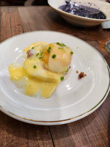 Eggs benedict wasn't poached, more like day old soft boiled in a fake hollandaise with some kind of leftover pullman cut into irregular pieces.