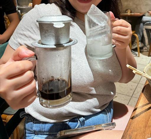 What we had here is brunch: Phó Bō (clear beef broth with rice noodles and raw graded beef sirloin) Būn Bō Hué (lemongrass beef broth, rice noodles, brisket, tendon, sót saté) Chá Giō (fried pork spring rolls with nuóc chām sauce) Gói Cuōn (fresh spring rolls, shrimp, pork, and peanut sauce) Cá phē suá da (Vietnamese Coffee) Lemongrass Tea