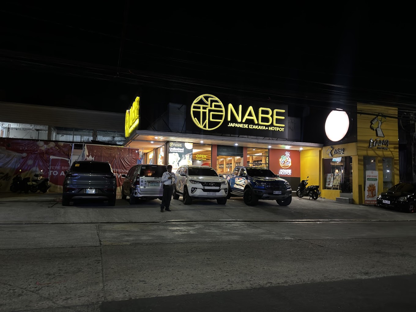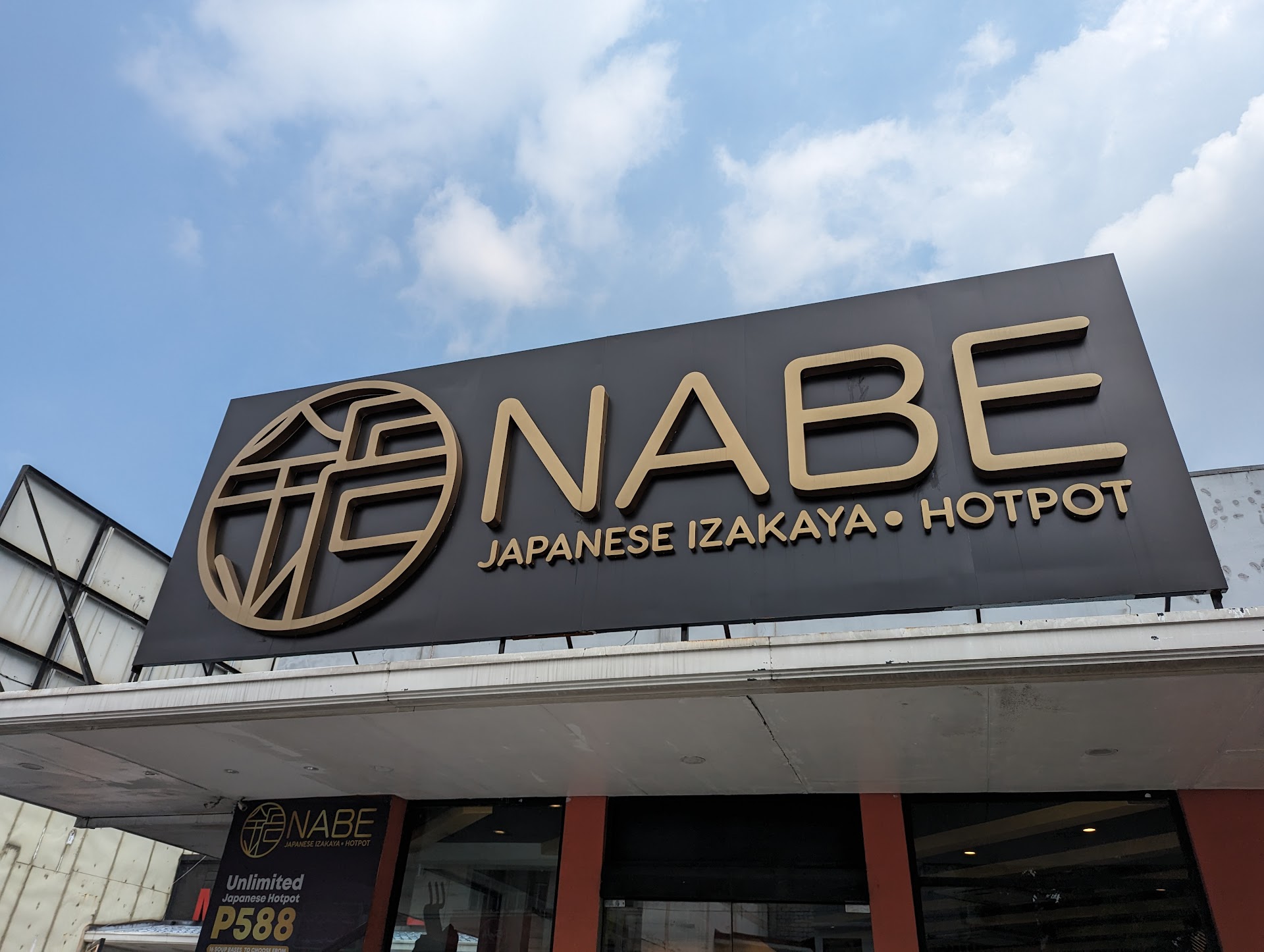 Read moreFirst time we visited Nabe Japanese and Izakaya Hotpot in Banawe. Somehow, it was good, but not really that good as to how it was promoted online. I guess I just did not like two of their food that was served. One, the special sauce. It was so salty. Even when I added broth to it. It still was salty. Even if I combined it with other food on the table, or mixed it with other side dishes. It actually ruined the other food's taste. Two, the kimchi did not really taste like kimchi. Another customer from the other table even asked the waiter if it was an old kimchi oe what. It was bland. The meat served were all okay. The teriyaki soup base is good. We ordered for Japanese rice and vermicelli but it was never served even until we were done eating. We were not even advised by the waiter if it was available or not. The miso soup was just okay. The vegetable platter was obviously a stock, as the leaves are way too dry, the carrots and corn were cut and stored and both looks old. Try slicing a carrot and leave it on your table overnight uncovered... that's what we got. The assorted balls were okay. The yakisoba tasted like the usual Pinoy pansit canton. Nothing special. Service was okay. But not all waiters were accomodating and courteous. The place is good though. Parking is good enough for a couple of cars. Guard...