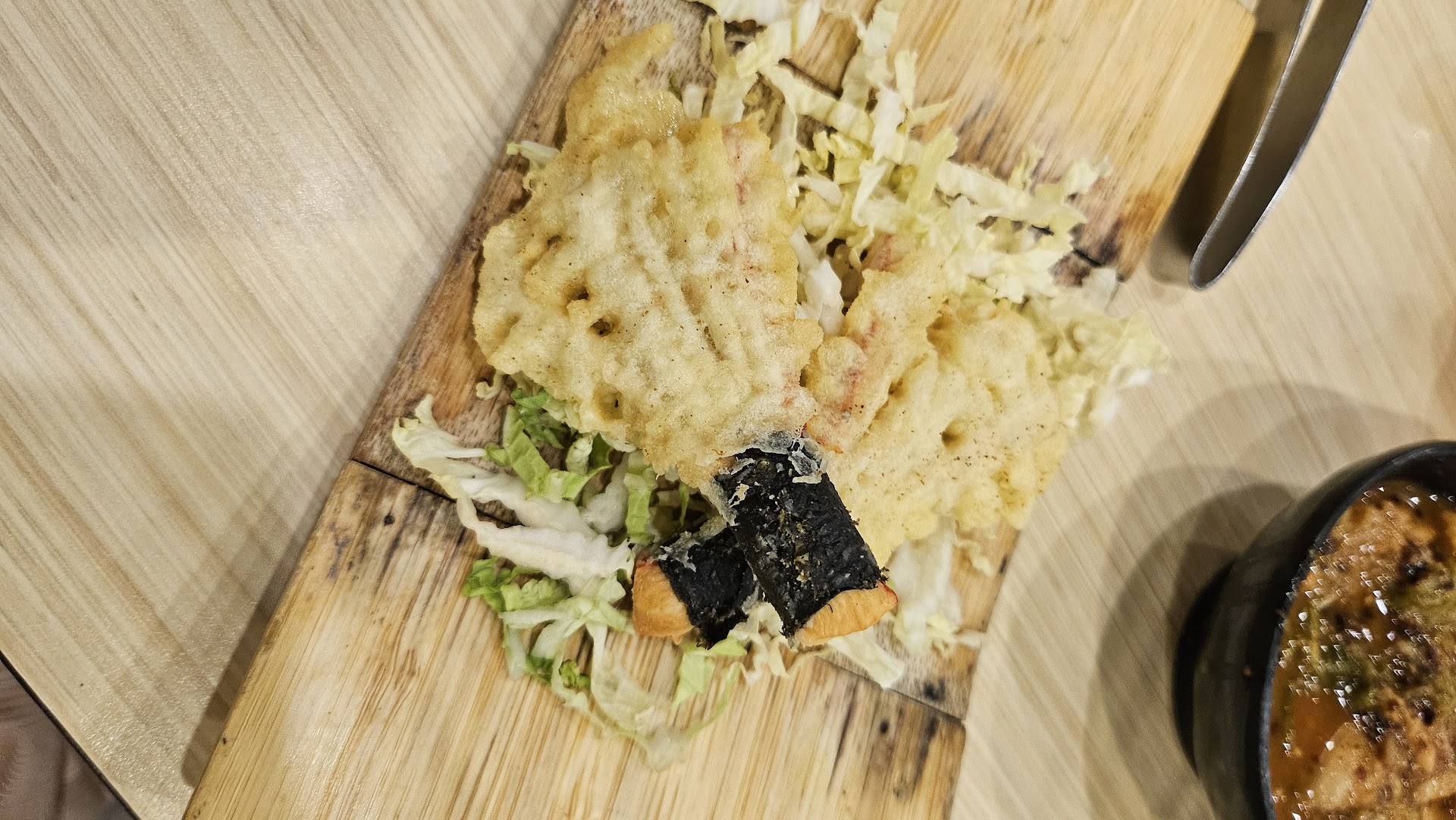 Sides: Crab Stick Tempura While a tad bit oily, this was definitely a good break to have from chewing our chosen protein.