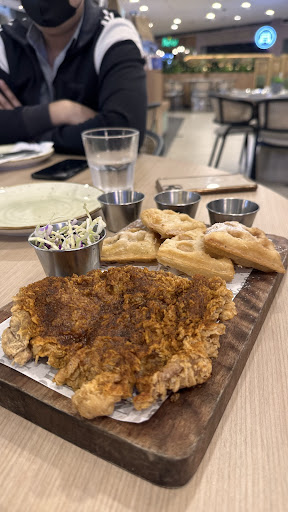 The buttermilk fried chicken stood out as a highlight. Marinated in buttermilk, the chicken is tender and juicy, with a subtle tanginess that enhances its flavor. The exterior boasts a golden-brown, crispy crust that offers a delightful crunch with each bite. This combination of textures and flavors makes it a comforting and satisfying dish.