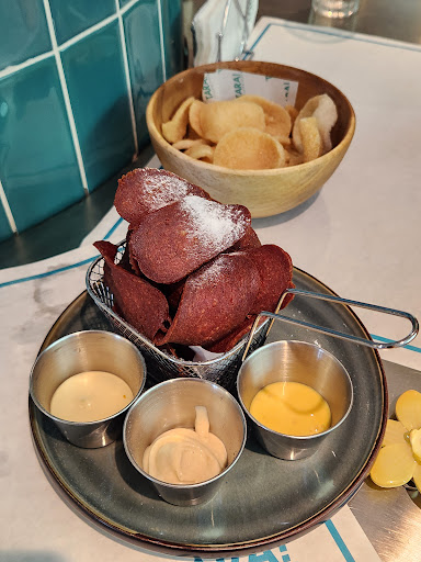 onion rings āļøāļøāļøāļø onion rings were typical but inchresting dips! spicy adobo aioli wasnt spicy however š i did taste the adobo
